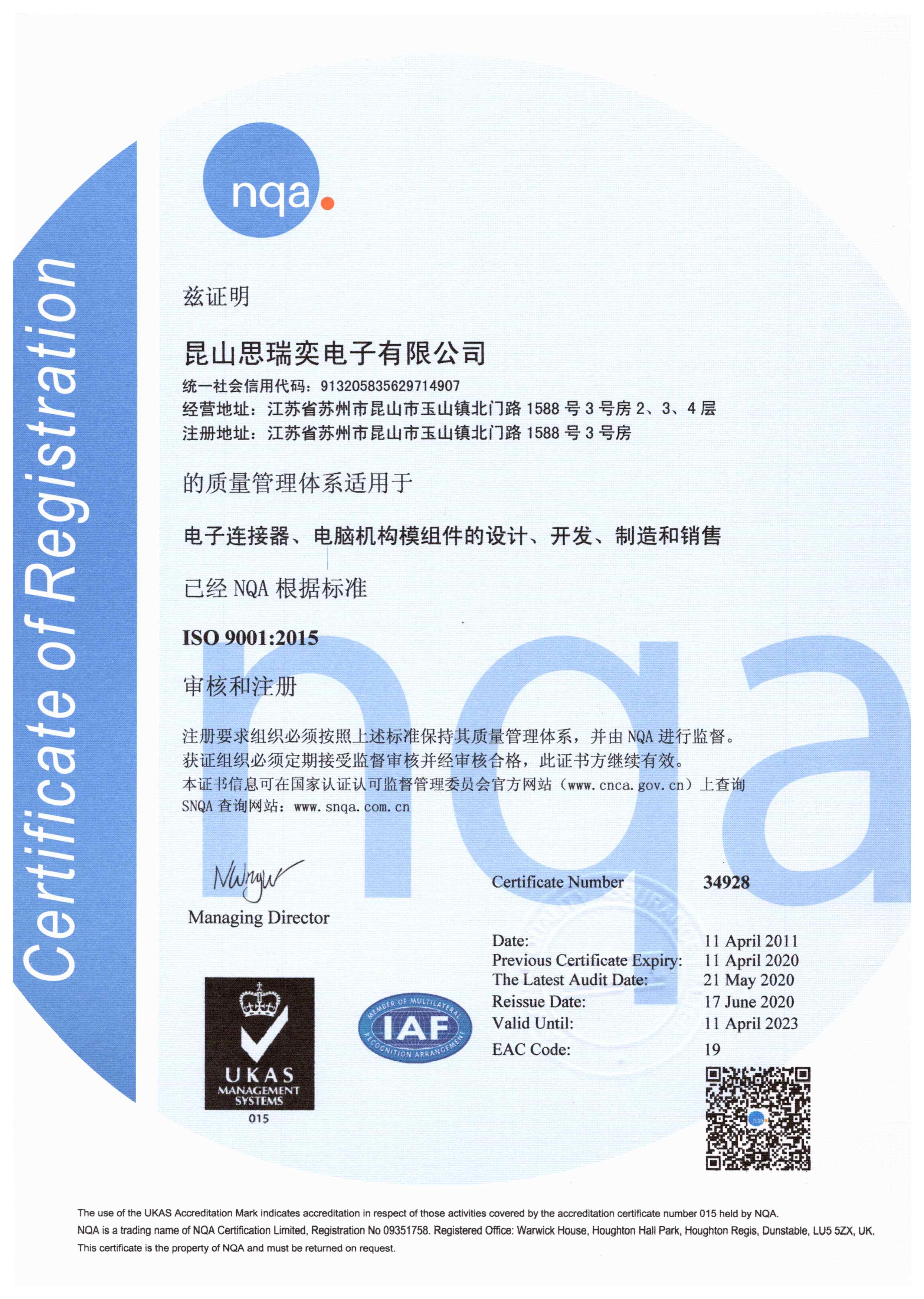 思瑞奕電子有限公司成立于2010年10月,注冊(cè)資金7500萬(wàn)人民幣,總部位于江蘇省昆山市,在重慶、江蘇東臺(tái)、江蘇太倉(cāng)設(shè)有分廠,公司于2011年通過(guò)ISO9001/ISO14001認(rèn)證,2013年通過(guò)高新技術(shù)企業(yè)和TS16949(IATF)體系認(rèn)定,2016年先后通過(guò)知識(shí)產(chǎn)權(quán)管理體系認(rèn)證、安全生產(chǎn)標(biāo)準(zhǔn)化認(rèn)證,2017年獲頒江蘇省民營(yíng)科技企業(yè)、2018年先后獲得蘇州市人民政府認(rèn)定企業(yè)技術(shù)中心、科技部認(rèn)定中小型科技企業(yè)、江蘇省最具成長(zhǎng)性高科技企業(yè)、2020年獲得江蘇省人民政府認(rèn)定企業(yè)技術(shù)中心、2021年獲得蘇州市瞪羚計(jì)劃入庫(kù)企業(yè)、江蘇省省級(jí)工程技術(shù)研究中心、江蘇省專精特新中小企業(yè)等榮譽(yù)稱號(hào)......